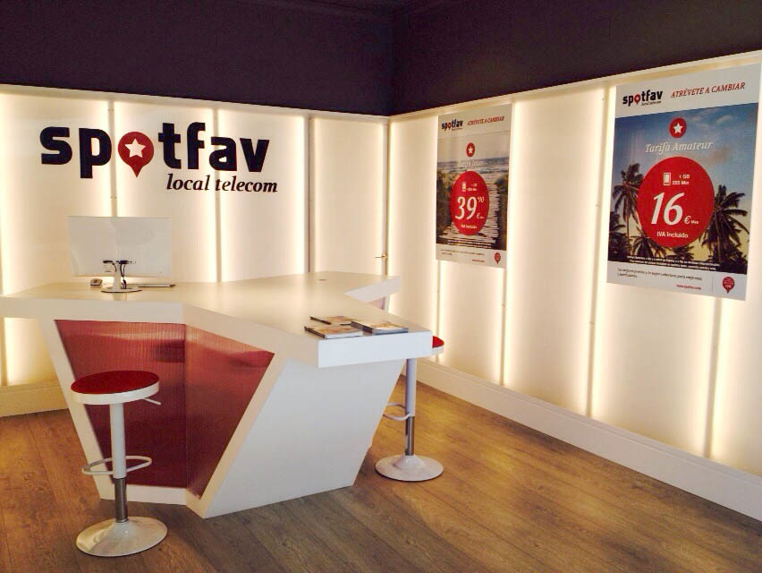 El encargo de Spotfav Local Telecom tiene dos fases. En primer lugar, consiste en crear una imagen arquitectónica para las franquicias del operador móvil que pueda ser aplicable a todo tipo de locales comerciales. Posteriormente, en contacto con cada nuevo franquiciado, se encarga a nuestra firma la adaptación de esa idea a distintos locales ubicados -hasta la fecha- en Tarifa, Nerja y Calviá y su construcción, en un proceso de "llave en mano" que incluye reforma interior y exterior del local y suministro de mobiliario.